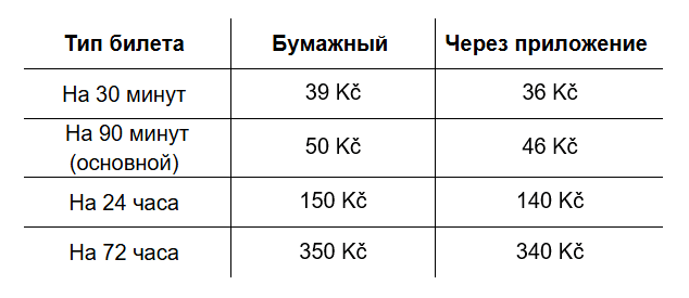 Самый удобный и выгодный способ оплаты в Праге — приложение PID Lítačka. Билеты через приложение стоят на 4–10 крон дешевле бумажных на каждой поездке. Приложение также позволяет планировать маршруты, смотреть расписание в реальном времени и управлять именным проездным.