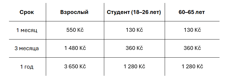 В Праге в 2026 году действуют следующие временные тарифы: