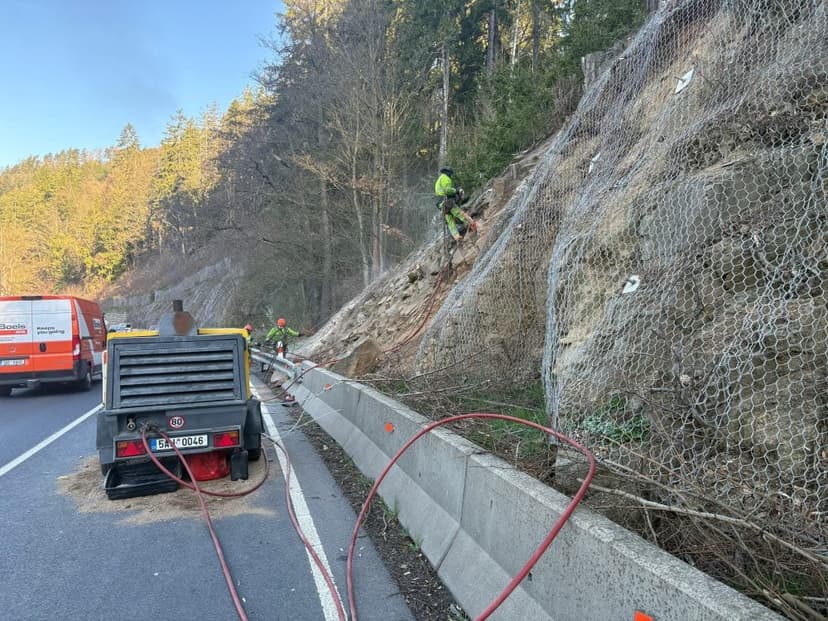 На трассе между Карловыми Варами и Пльзенем укрепляют скалы