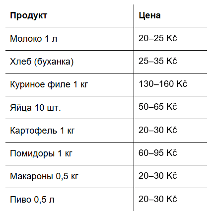 Если готовить дома и разумно подходить к покупкам, один человек вполне укладывается в 5 000–7 000 Kč в месяц на продукты. Семья из двух взрослых — порядка 9 000–12 000 Kč.