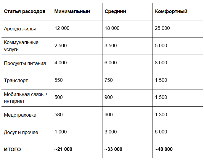 Ниже — ориентировочный бюджет на одного взрослого человека в Праге в месяц. В регионах (Брно, Пльзень, Острава) бюджет будет меньше на 20–35% — прежде всего за счёт аренды.